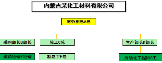 發(fā)展并培養(yǎng)線人是項(xiàng)目運(yùn)作成單的重要保障,線人不僅能為我方提供重要的項(xiàng)目情報(bào),而且還能幫助推進(jìn)項(xiàng)目出謀劃策,甚至在關(guān)鍵的時(shí)候在內(nèi)部幫助我方運(yùn)作項(xiàng)目,里應(yīng)外合是大項(xiàng)目運(yùn)作成單的重要策略。 【案例背景】 內(nèi)蒙古某化工材料股份有限公司, 是國家級高新技術(shù)企業(yè)、中國該領(lǐng)域的龍頭生產(chǎn)企業(yè)。變電站自動化系統(tǒng)歷史上的供應(yīng)商有GDNR、SM、XJDQ等。電石項(xiàng)目采用的是SM產(chǎn)品;VAC一期項(xiàng)目招標(biāo)使用GDNR公司產(chǎn)品,二期項(xiàng)目議標(biāo)使用GDNR系統(tǒng);水泥項(xiàng)目使用XJDQ的自動化系統(tǒng)。 【組織架構(gòu)】