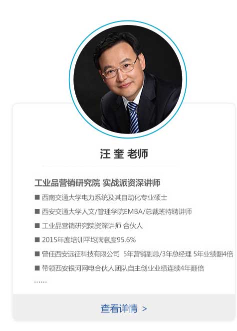 課程對象:工業(yè)品企業(yè)總經(jīng)理,副總,營銷總監(jiān),大區(qū)總監(jiān),或從事工業(yè)品營銷培訓師等