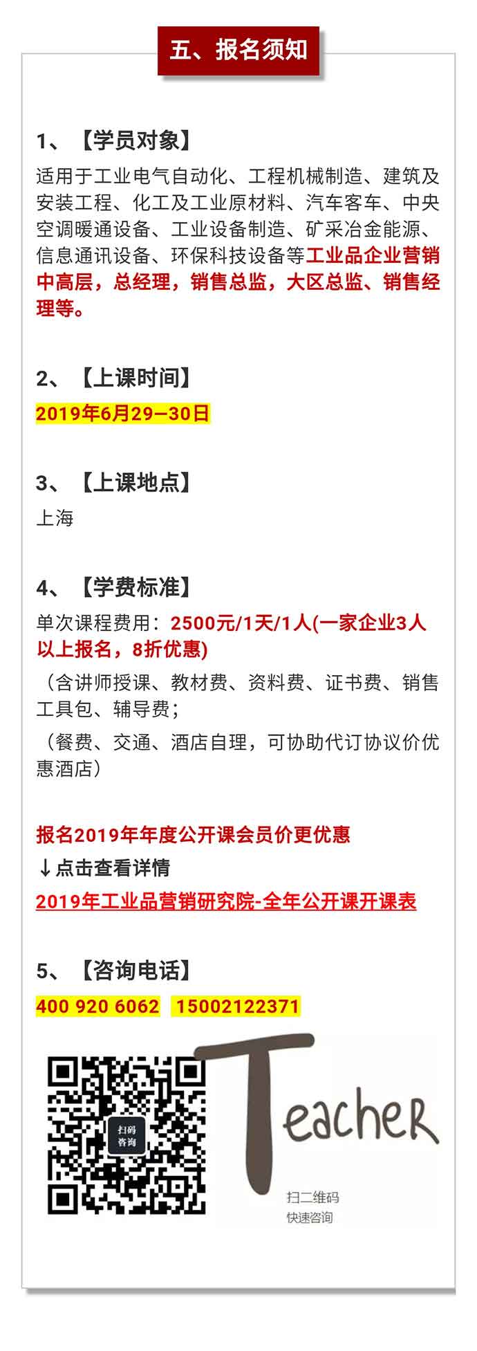 【公開課預(yù)告】2019年6月29—30日打造高績效的工業(yè)品營銷團(tuán)隊(duì)公開課 點(diǎn)擊次數(shù):6434發(fā)布時(shí)間:2019-4-28 21:02:51 上一條:【公開課預(yù)告】2019年6月15-16日項(xiàng)目型銷售與標(biāo)準(zhǔn)化管理—講師授證班下一條:【公開課預(yù)告】2019年8月30-31日工業(yè)品營銷業(yè)績倍增的系統(tǒng)改進(jìn)方案公開課