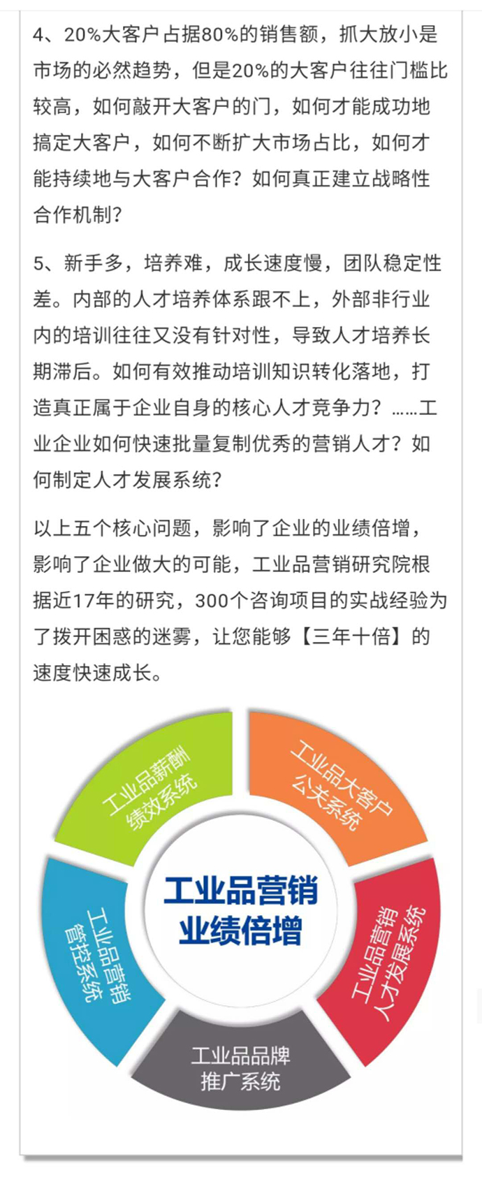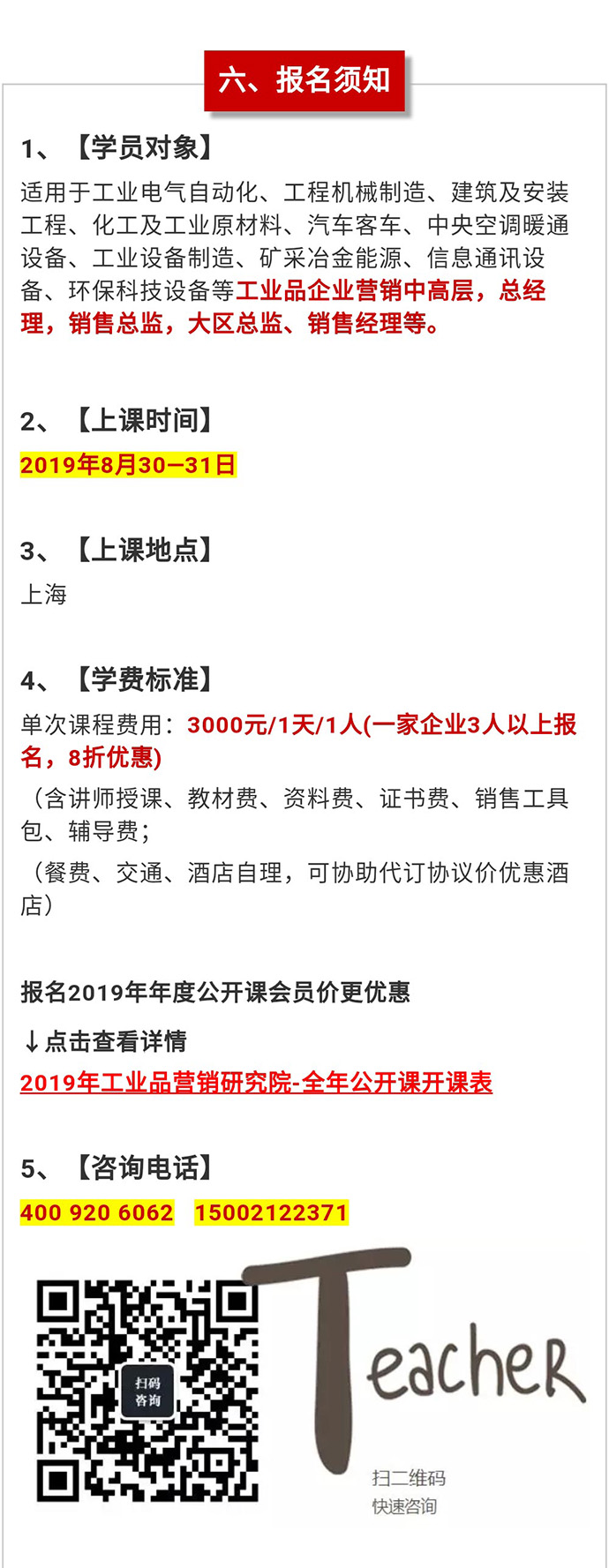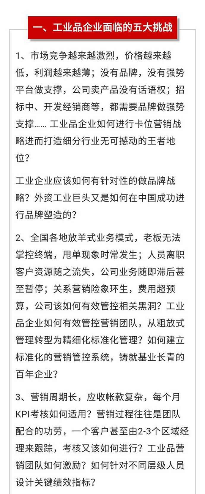 【公開課預(yù)告】2019年8月30-31日工業(yè)品營(yíng)銷業(yè)績(jī)倍增的系統(tǒng)改進(jìn)方案公開課 點(diǎn)擊次數(shù):6590發(fā)布時(shí)間:2019-4-28 21:04:18 上一條:【公開課預(yù)告】2019年6月29—30日打造高績(jī)效的工業(yè)品營(yíng)銷團(tuán)隊(duì)公開課下一條:【公開課預(yù)告】2019年10月26-27日應(yīng)收賬款催收30計(jì)、信用管理與全款追賬策略公開課
