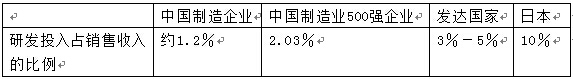 國內(nèi)外制造企業(yè)研發(fā)投入占銷售收入比例對比