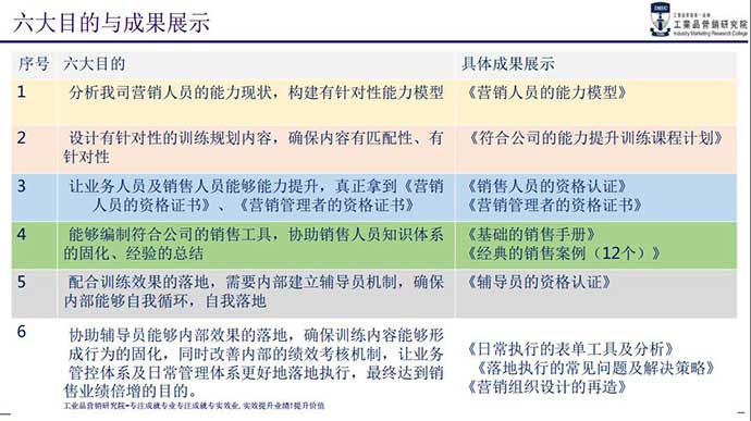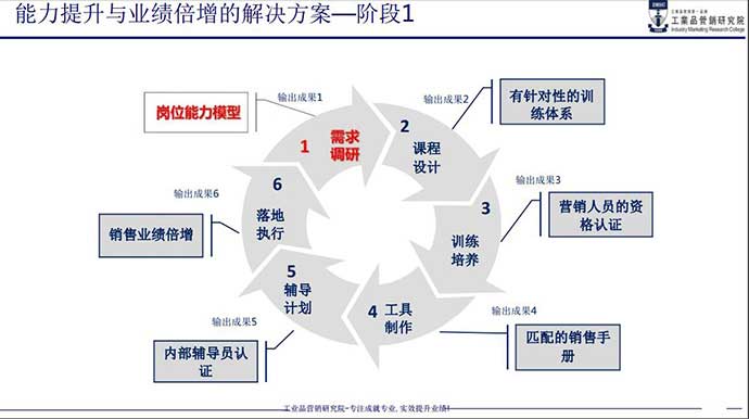 本次培訓(xùn),通過全面營銷人員素質(zhì)能力模型的構(gòu)建和分析,量身定制營銷培訓(xùn)方案,旨在系統(tǒng)化提升營銷人員的綜合銷售能力,提升營銷人員的職業(yè)化素養(yǎng),規(guī)范工業(yè)品營銷業(yè)務(wù)流程及階段里程碑任務(wù),系統(tǒng)化訓(xùn)練工業(yè)品營銷的技能,咨詢式一對一落地輔導(dǎo),導(dǎo)入系統(tǒng)規(guī)范化的銷售手冊,全程采用調(diào)研+分析+分層級(jí)定制化+分階段系統(tǒng)培訓(xùn)+案例演練+工具導(dǎo)入+咨詢式落地輔導(dǎo)+銷售手冊導(dǎo)入+跟蹤輔導(dǎo)
