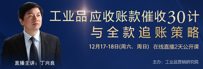 工業(yè)品營(yíng)銷研究院一直秉持“專注成就專業(yè),實(shí)效提升價(jià)值”的核心價(jià)值觀,致力于工業(yè)品營(yíng)銷領(lǐng)域研究,憑借近20年的工業(yè)品營(yíng)銷咨詢項(xiàng)目和營(yíng)銷培訓(xùn)的實(shí)戰(zhàn)深厚經(jīng)驗(yàn),工業(yè)企業(yè)的營(yíng)銷戰(zhàn)略,營(yíng)銷模式及大量營(yíng)銷案例的解析,掌握成熟的工業(yè)品營(yíng)銷經(jīng)驗(yàn)和方法,讓更多工業(yè)企業(yè)在當(dāng)前國(guó)際國(guó)內(nèi)嚴(yán)峻的大環(huán)境下,在制造業(yè)發(fā)展的寒冬,在供大于求的市場(chǎng)上少走彎路,減少摸索和犯錯(cuò)的時(shí)間和成本。從營(yíng)銷咨詢上系統(tǒng)解決企業(yè)營(yíng)銷發(fā)展的根本問(wèn)題,從營(yíng)銷培訓(xùn)上系統(tǒng)提升營(yíng)銷團(tuán)隊(duì)市場(chǎng)開拓能力,優(yōu)化營(yíng)銷系統(tǒng)和架構(gòu),快速找到一套適合自己的營(yíng)銷突圍方法和路徑,快速打破營(yíng)銷瓶頸,助推工業(yè)企業(yè)高效發(fā)展!