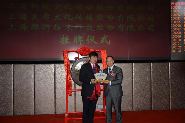 隨后,丁興良董事長與股權托管中心高管互相交換禮物,丁興良董事長收到了股權交易中心送出的標志著成功掛牌上市的縮小版銅鑼,作為留念。之后靈希股份掛牌儀式進入最關鍵的環(huán)節(jié),11時,丁興良董事長與嘉定區(qū)區(qū)委常委副區(qū)長費小妹共同敲響上市銅鑼,標志著靈希股份正式登陸上海股權交易中心,成為國內(nèi)第一家成功掛牌上市的管理咨詢與培訓公司。