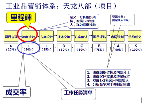 工業(yè)品營銷業(yè)務管控體系分為信息收集,項目立項,深度接觸,技術交流,方案確認,商務公關,