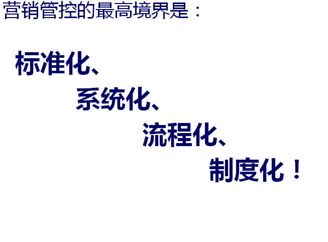 營銷管控的最高境界是標準化、系統(tǒng)化、流程化、制度化。