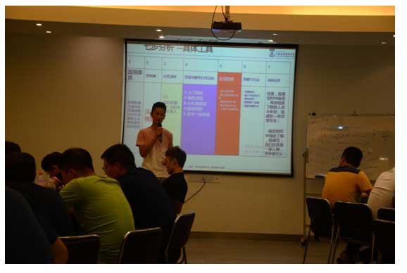 圖為學員們正在思考我方業(yè)務管控體系分成哪幾個關鍵節(jié)點呢?