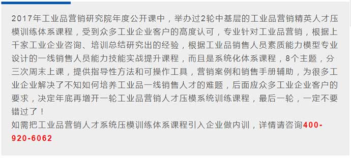 【11月24—25日】 【年底最后一輪】工業(yè)品營銷精英人才能力提升系統(tǒng)公開課第一階段即將開課! |