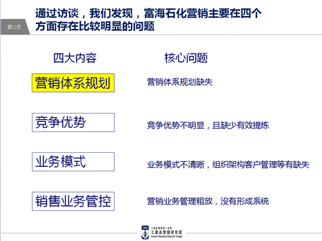 以下是工業(yè)品營(yíng)銷研究院以丁院長(zhǎng)為主導(dǎo)的講師團(tuán)隊(duì)對(duì)企業(yè)做出的部分診斷報(bào)告。