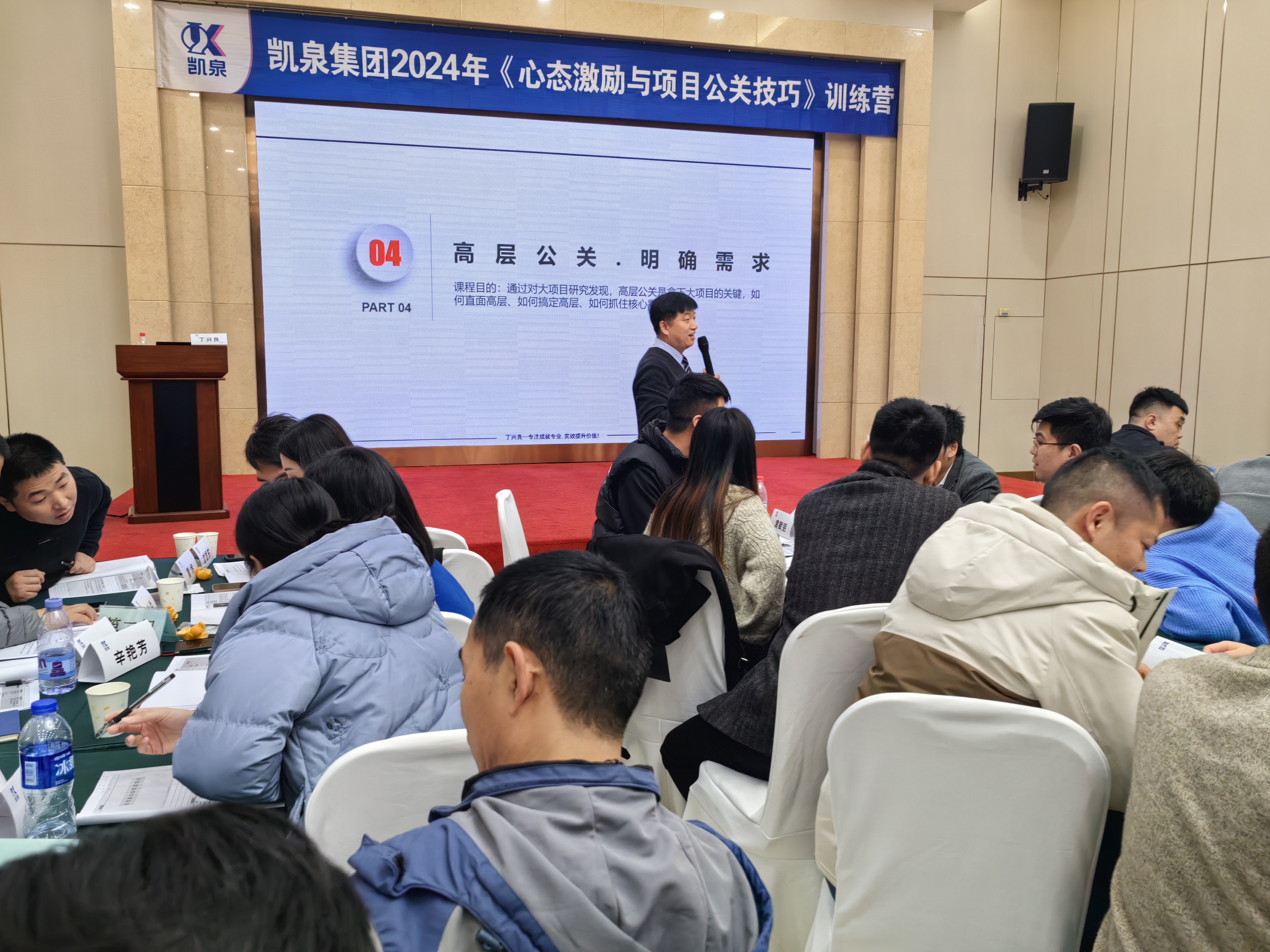 2024年2月工業(yè)品營(yíng)銷研究院丁興良老師為凱泉集團(tuán)做《心態(tài)激勵(lì)與項(xiàng)目公關(guān)技巧 》課程培訓(xùn)。