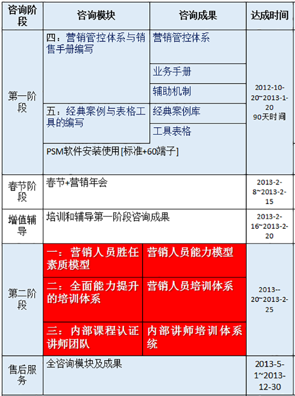 本公司在本年初1月份委托工業(yè)品營銷研究院為我們營銷部門做的營銷培訓(xùn)課程,包括天龍七部、營銷團隊建設(shè)、人才壓模體系等。針對本公司現(xiàn)存營銷問題設(shè)計開設(shè)的培訓(xùn)班,極大地幫助我們規(guī)范了營銷流程,使我們營銷工作做的更流暢;通過對天龍七部的業(yè)務(wù)梳理,提高了對營銷團隊的管理能力,使得我們對營銷業(yè)務(wù)優(yōu)劣的評判有章可循。