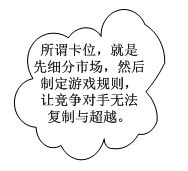 卡位就是市場再細(xì)分,選擇或者創(chuàng)造新市場;