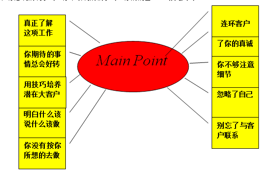 要點(diǎn)六:在成功培養(yǎng)了一個(gè)潛在大客戶之后,你忘了要求他為你提供連環(huán)客戶:這是個(gè)嚴(yán)重的錯(cuò)誤,后果是你又要花費(fèi)太多的時(shí)間與精力去尋找下一個(gè)客戶,但是,你為何忘了這個(gè)不是麻煩,而是一勞永逸的好方法呢?