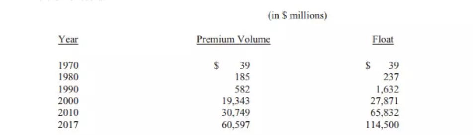 此外,某些財險公司專注于醫(yī)療過失、產品責任等領域,也就是業(yè)內所謂的“長尾”業(yè)務。這些業(yè)務產生的浮存金要遠高于汽車碰撞險和房產險等險種,后者需要保險公司立刻向索賠者支付維修款項。