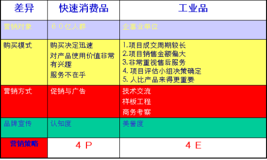 根據(jù)IMSC營銷研究院對工業(yè)品的了解,并對工業(yè)快速消費(fèi)品與工業(yè)品行業(yè)之間的差異作如下幾點(diǎn):