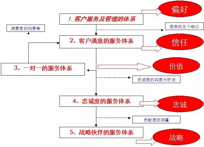 IMSC研究得出:服務(wù)大客戶一共有五個(gè)層次,需要來做提升,五個(gè)層次的提升能獲得相應(yīng)的客戶利益