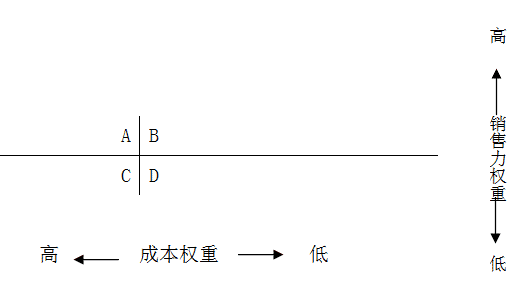 上述兩個因素,構(gòu)成工業(yè)品相對于客戶的四種權(quán)重情況: