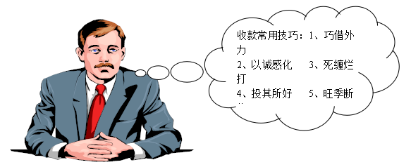 ④、軟硬兼施。通過演雙簧的方式,由不同的的收款人員扮演黑臉和白臉的角色,分別采用強(qiáng)硬地態(tài)度和溫和的勸說方法,從不同的兩個(gè)方面對(duì)其心理進(jìn)行攻擊,從而達(dá)到收款的目的。
