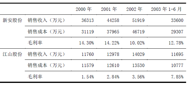 表4-4 新安股份與江山股份草甘膦業(yè)務(wù)對(duì)比